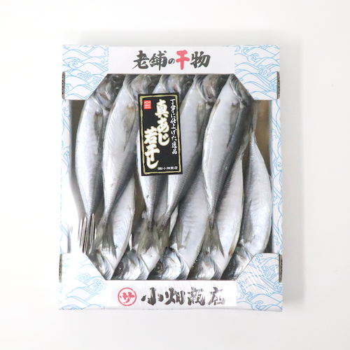 あじの身を丸ごと一匹使用した贅沢な逸品です。開きの干物にはない、あじ本来の旨みと風味が凝縮されています。一口かじると口の中でほどけるような食感を楽しむことができます。